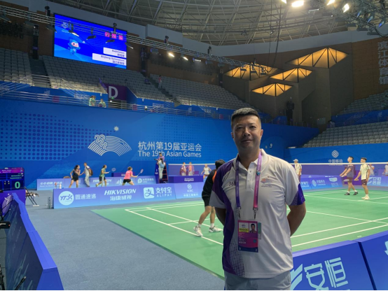 王建军老师在本次亚运会中承担羽毛球项目国内技术官员(NTO)工作,小组赛、半决赛、决赛共执裁30余场,圆满的完成了中国羽毛球协会的工作安排,个人专业能力得到了赛会的一致认可。