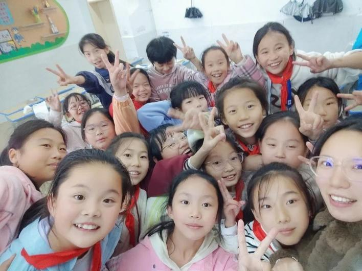 在这弥足珍贵的一年支教的日子里,我站上了我梦寐以求的三尺讲台,每节课上孩子们那一双双眼睛里看到的是知识,而我看到的是纯洁与坦诚。这段时间对我来说最大的收获是拥有了一种强烈而又真实的幸福感和满足感。这种幸福来源于学生对我的认可与喜爱,是从什么时候开始的呢,是他们问我“老师你明年还带我们吗”“老师我们班同学都可喜欢你了”“老师你什么时候走啊”“你走的时候可一定要给我们说,不要偷偷走”的时候,是上课前有学生专门来办公室找我跟我一起去教室的时候,是我们一起合照的时候孩子们天真而纯洁的笑脸,是下课时一群五年级的女生抱着我不让我走的时候,也许是给二年级上社团活动课,走过二年级的楼道被学生簇拥起来打招呼的时候,这段时间的点点滴滴在我脑海中留下了深刻的烙印。